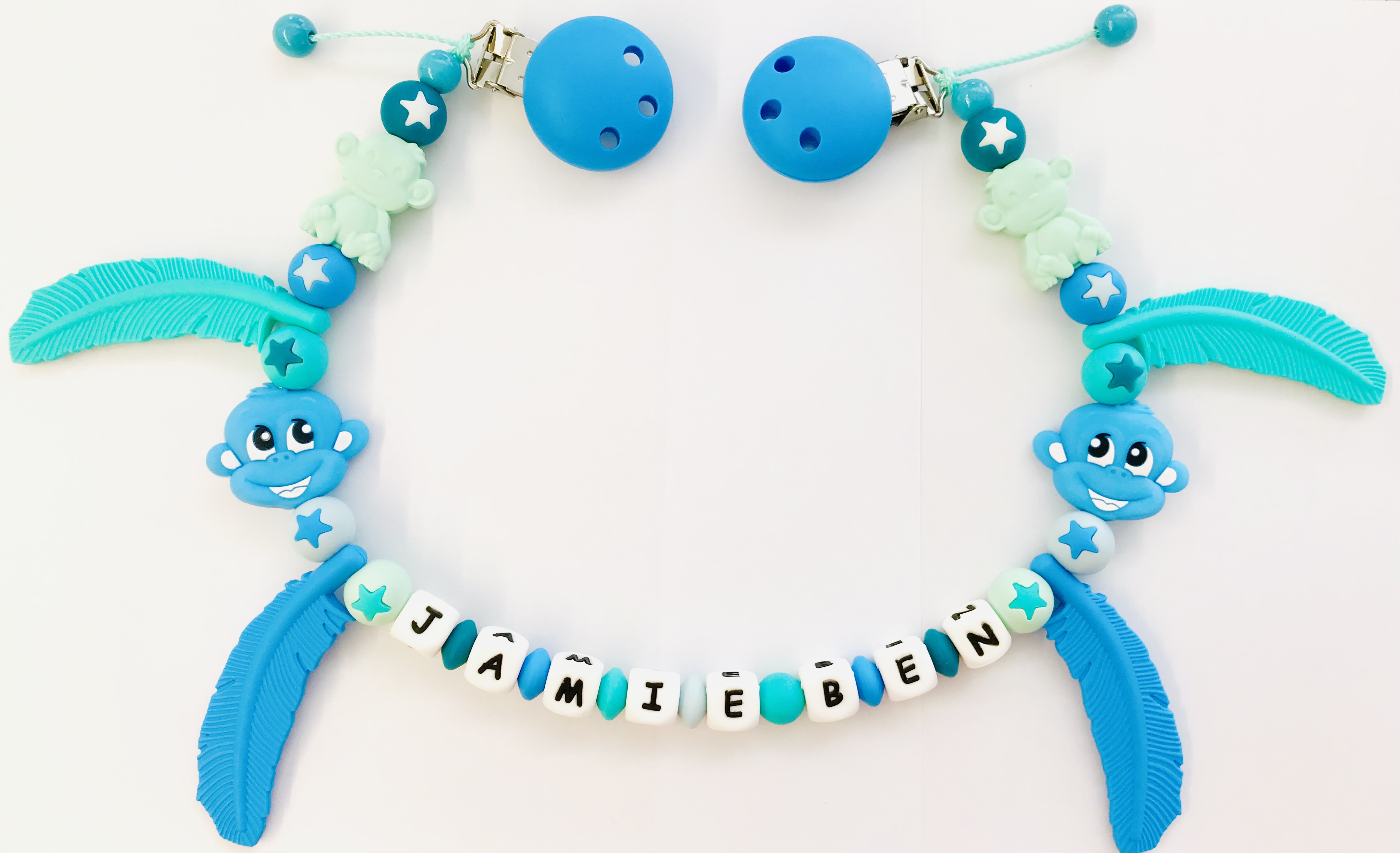 Wagenkette Silikon *Affen mint-helltürkis* mit Namen