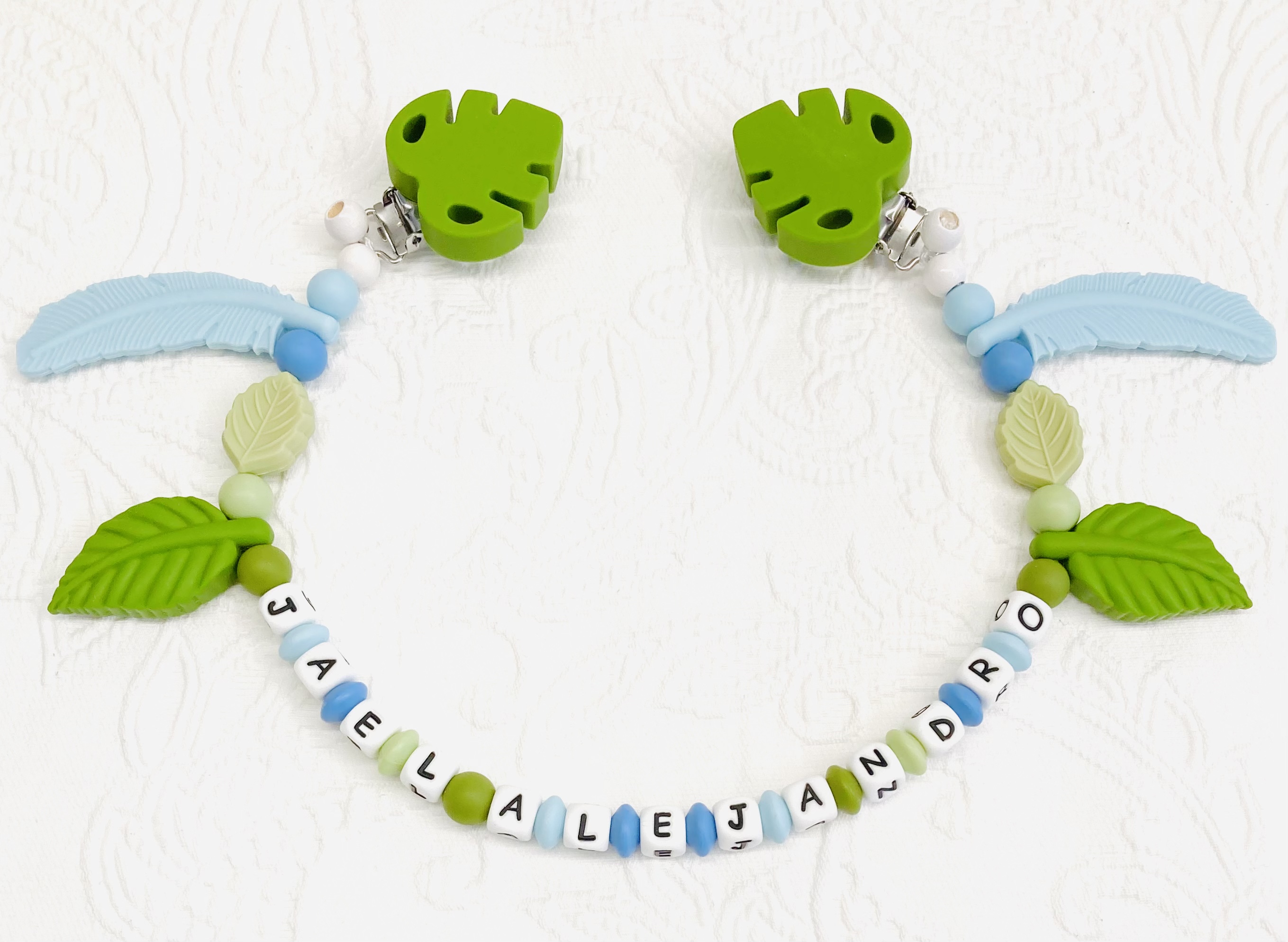 Wagenkette Silikon *Blätter-Tropical army-skyblau* mit Namen