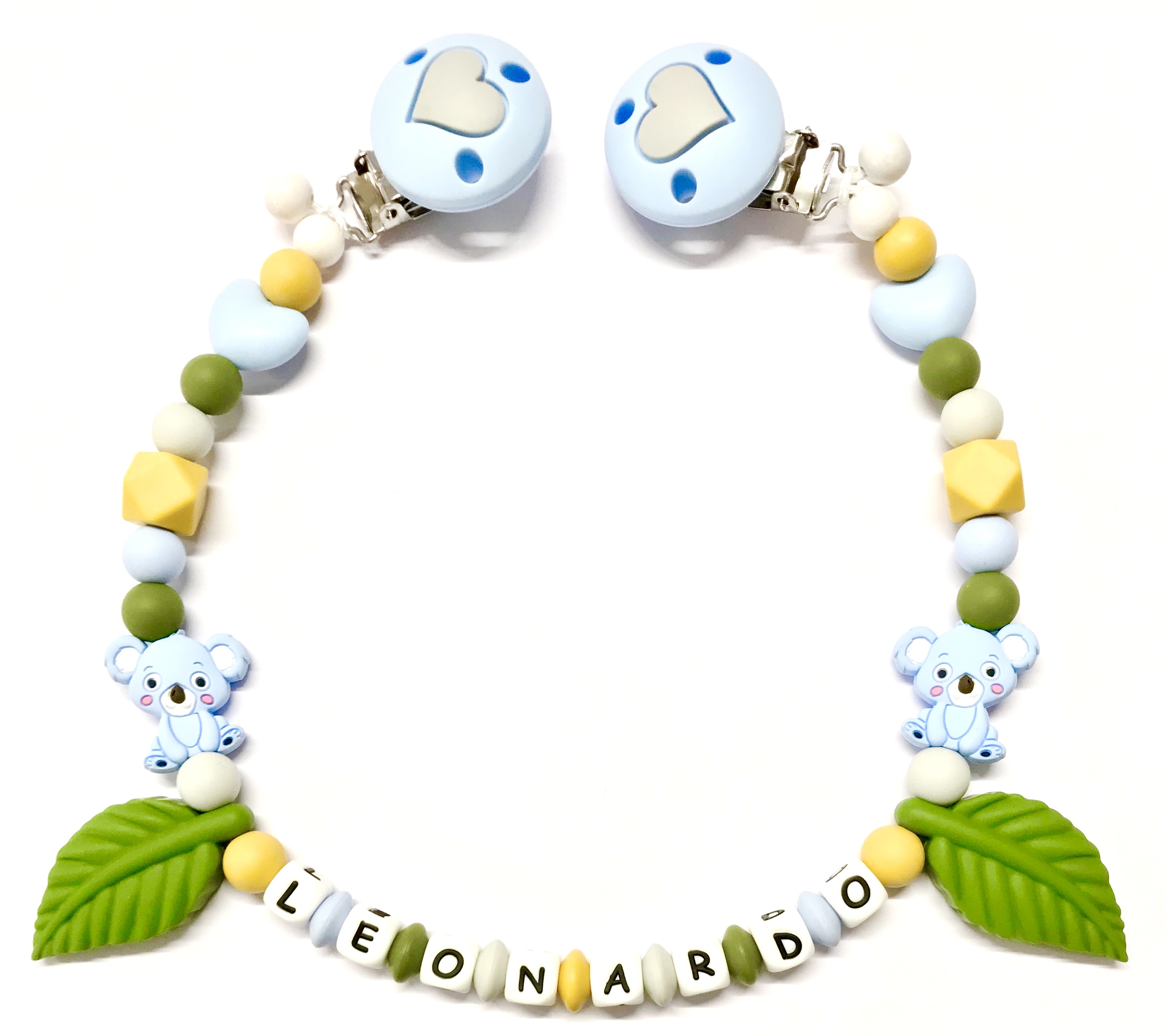 Wagenkette Silikon *Koala & Blätter pastellblau-army* mit Namen