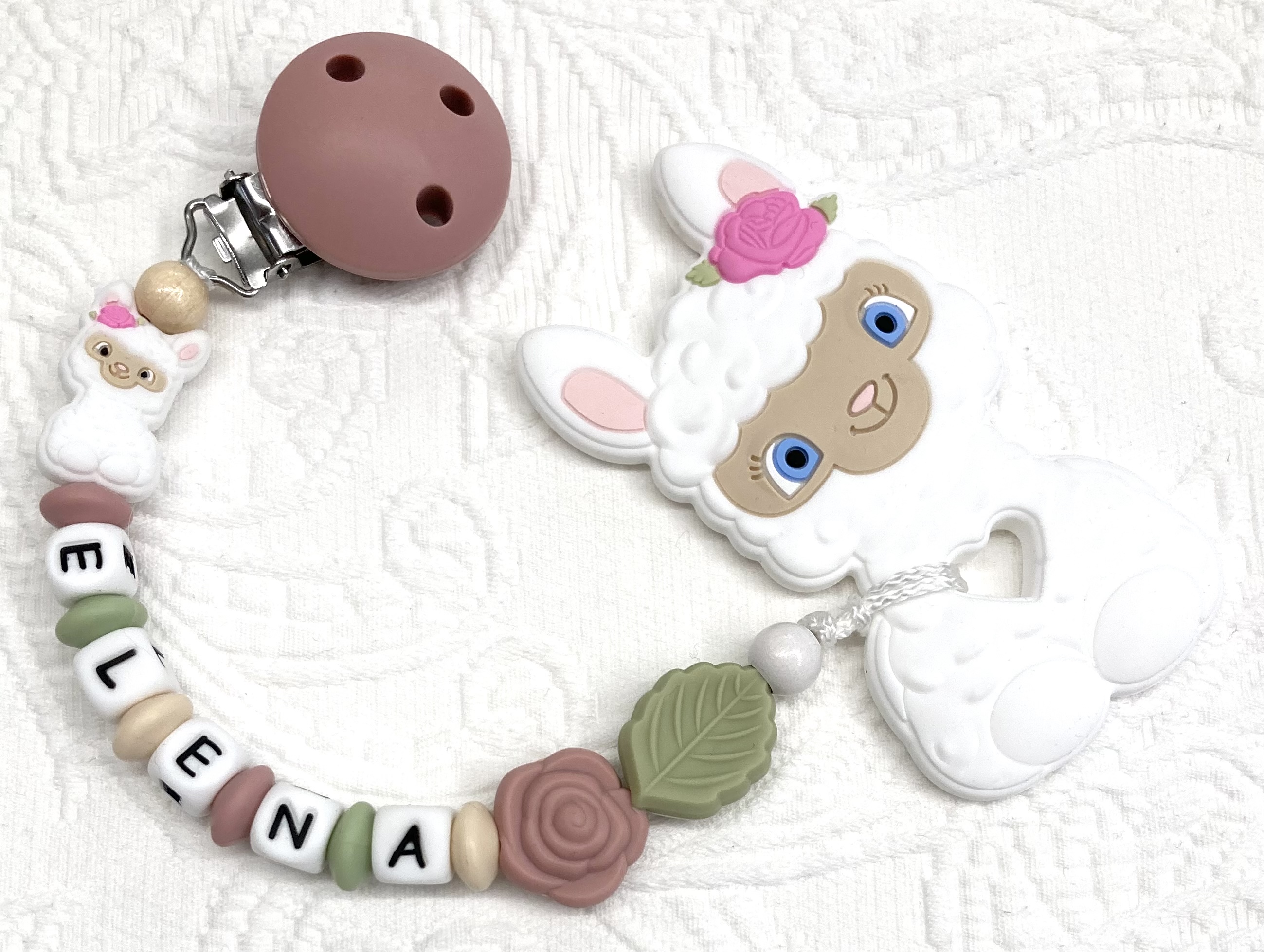 Beisskette Silikon *Lama weiss-aloe vera* mit Namen