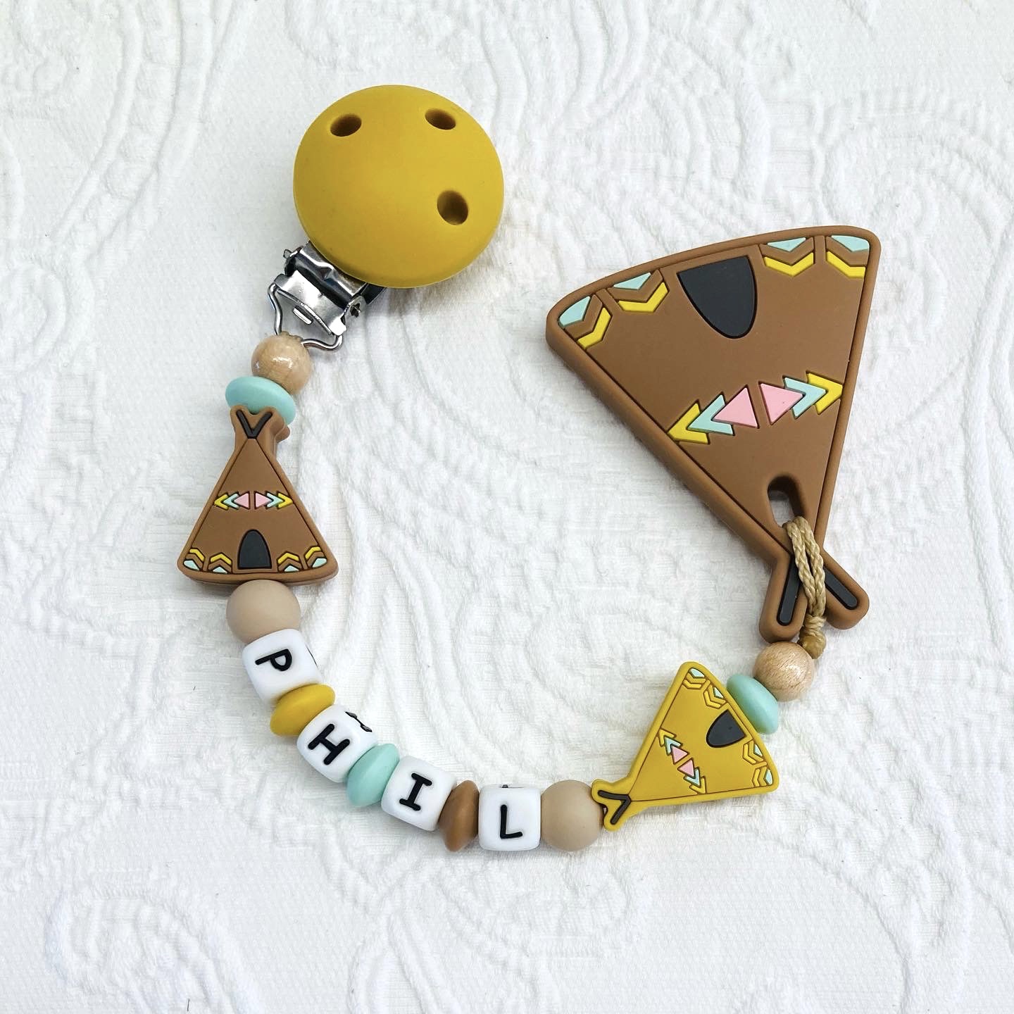 Beisskette Silikon *Tipi hellbraun-senfgelb* mit Namen