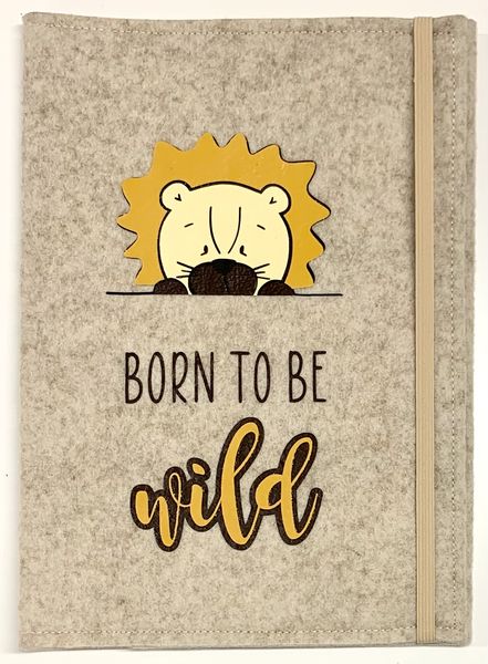 Untersuchungs-Heft Hülle bedruckt "Löwe, Born to be wild" natur-brauntöne
