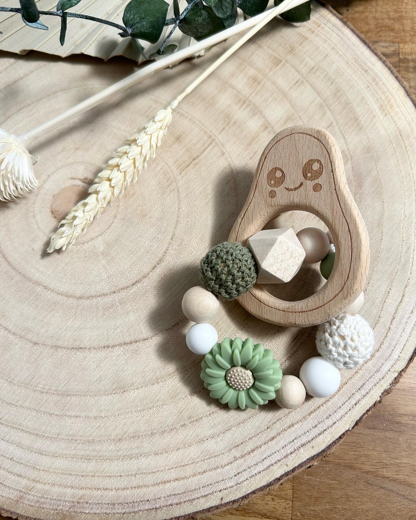 Greifling Naturholz *Avocado weiss-aloe vera* ohne Namen