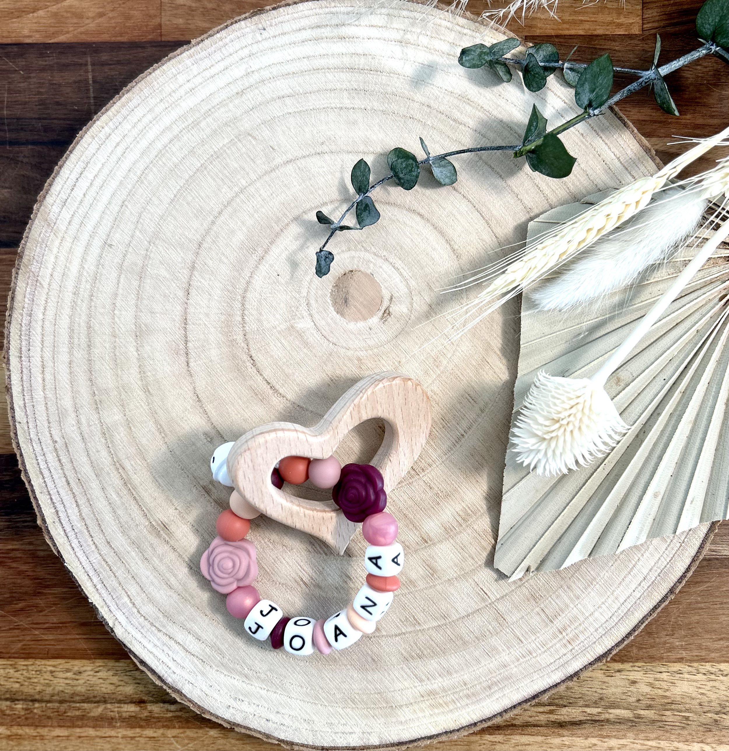 Preview: Greifling Naturholz *Herz rotewein-pfirsich* ohne Namen