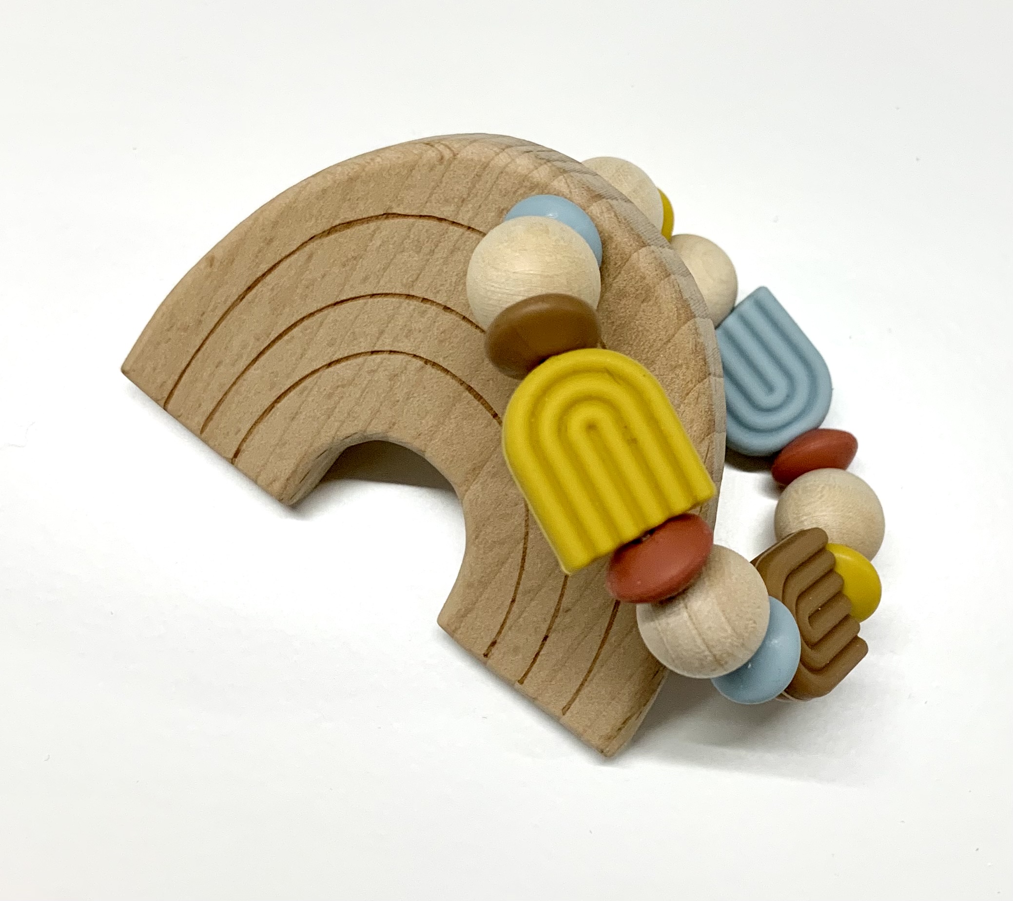 Greifling Naturholz *Rainbow senfgelb-babyblau* ohne Namen