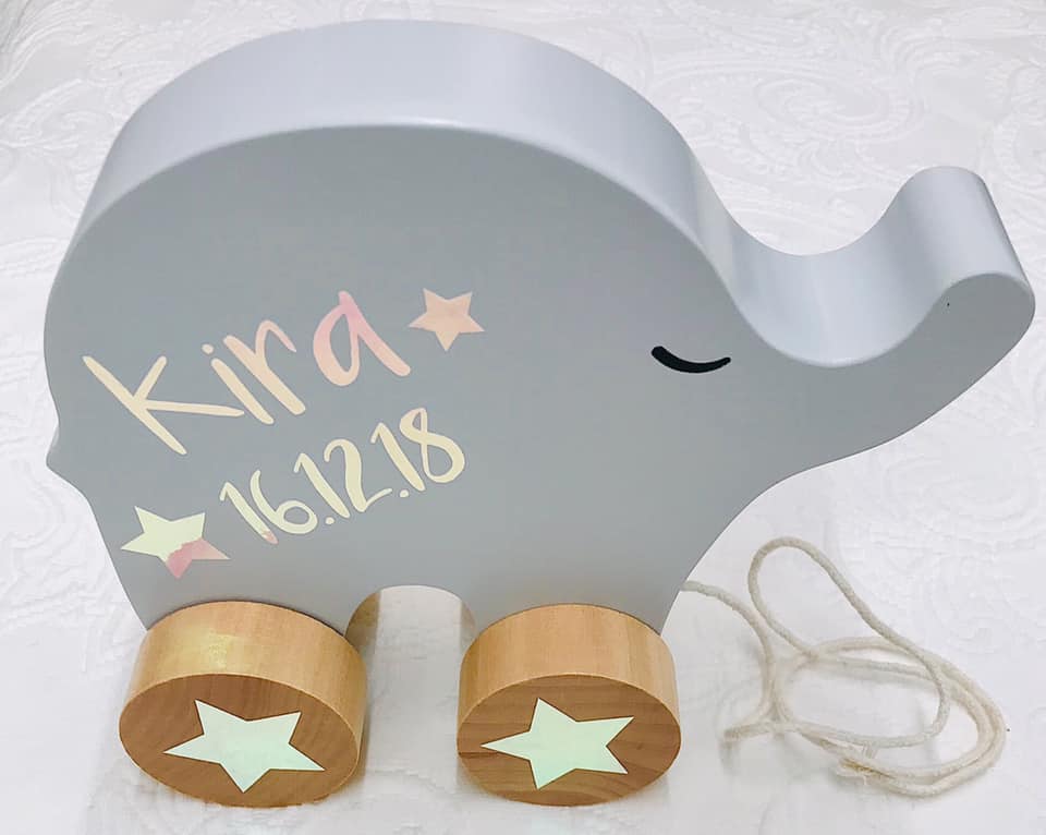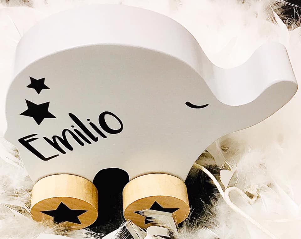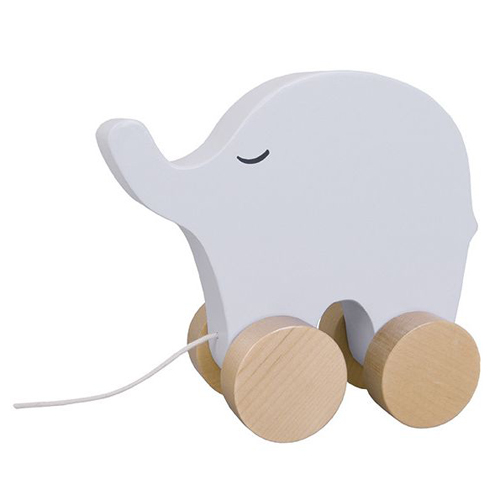 Ein klassisches, aus Holz gefertigtes Spielzeug in Form eines süssen Dickhäuters.